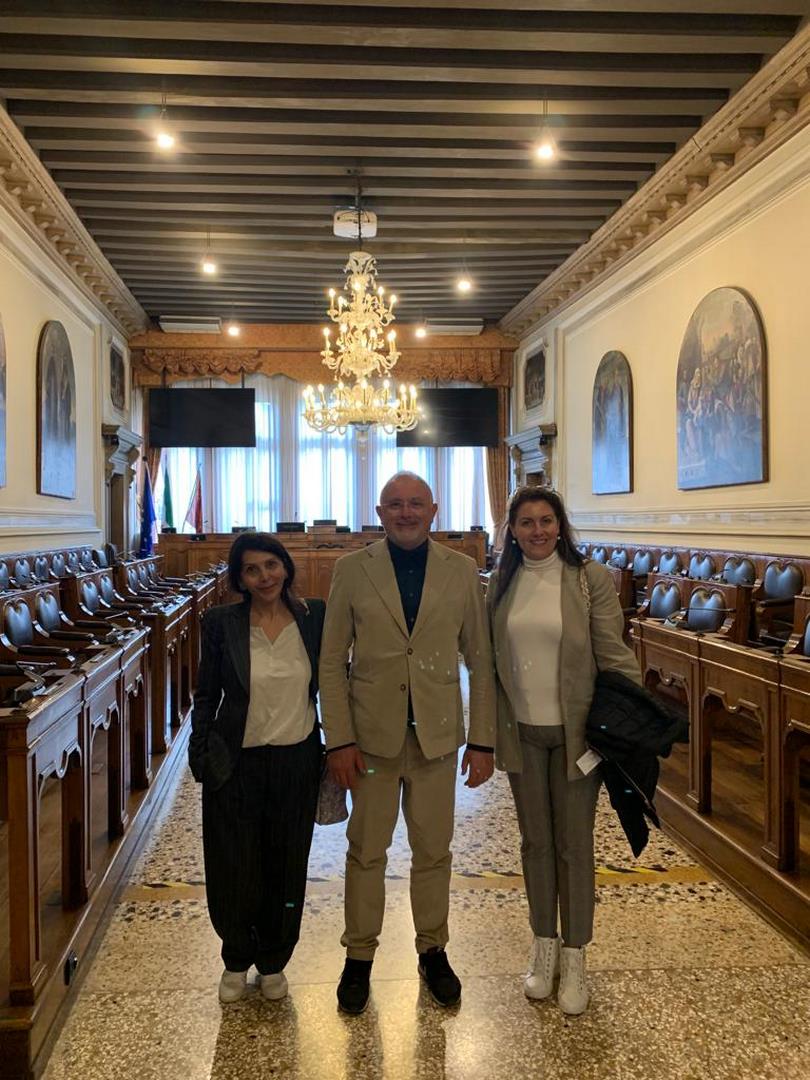 Un altro importante incontro è stato con Sua Eccellenza il Console dell’Armenia, Dr. Gagik Surucanian, che ha ringraziato Maria Saadeh per il suo sostegno sempre dimostrato al popolo armeno e in particolare per il suo impegno dentro al parlamento Siriano, con una proposta di legge, approvata 2 anni fa, per il riconoscimento del genocidio armeno. La Siria, grazie anche a Maria, è oggi il primo Paese arabo a riconoscere tale genocidio. Nel corso della riunione abbiamo discusso delle vari possibilità di realizzare insieme collaborazioni culturali a Venezia, coinvolgendo anche artisti sirani, in particolare ma non solo armeni. Ringraziamo vivamente Dr. Gagik Surucanian per la sua ospitalità e per la sua apertura mentale verso tutto ciò che è positivo e valido per tutti i popoli e nello specifico per il suo Popolo Armeno.