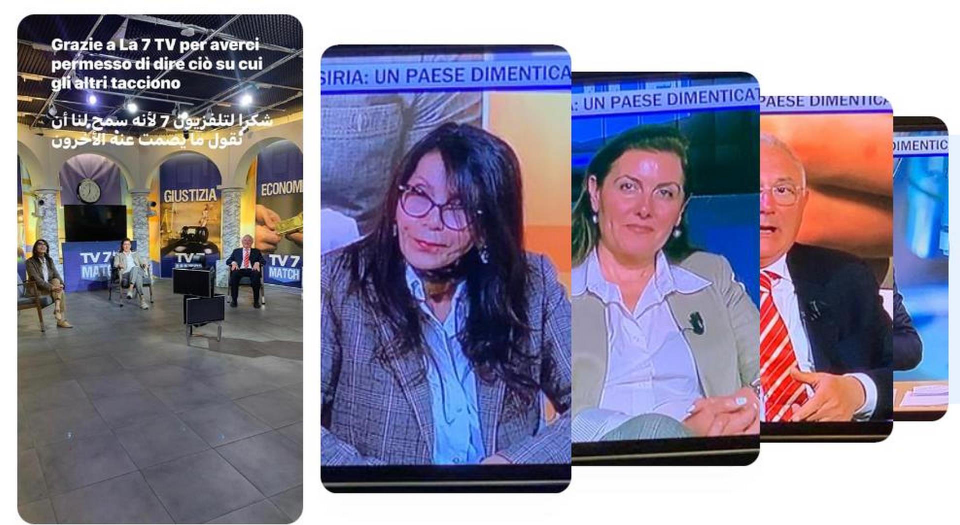 Infine siamo stati presso gli studi della televisione TV7 di Padova, dove Il suo fondatore, dott Ermanno Chasen, ha intervistato Maria Saadeh, assieme al nostro Presidente Paolo Capuzzo e alla Responsabile per la Cooperazione Internazionale Sanaa Chami. l'intervista è durata oltre mezzora ed il giornalista ha chiesto a Maria di illustrare al pubblico italiano la reale situazione della Siria, con particolare riferimento agli ultimi 12 anni di guerra e alla situazione attuale. Le domande sono state aperte e precise, al fine di poter conoscere, tramite la testimonianza di Maria, la reale condizione di un Paese di cui in Italia non si hanno nei mass media nazionali quasi mai informazioni dirette, ma solo reports filtrati dalla propaganda di guerra inglese e americana. Con grande professionalità ed onestà intellettuale, il dott Chasen ha posto delle domande puntuali e precise, senza far trasparire alcuna propria opinione personale al riguardo, ma solo al fine di capire e rendere comprensibile al pubblico la reale situazione di questo Paese. Analoghe domande sono state poste anche a Sanaa Chami e a Paolo Capuzzo, creando una specie di tavola rotonda, nella quale ognuno ha aggiunto qualcosa alla conoscenza della reale situazione della Siria. Certamente il pubblico avrà potuto sentire una voce diversa dal Main stream e nelle persone più attente sarà sorto qualche dubbio riguardo alla narrativa ufficiale ed il desiderio di approfondire autonomamente.